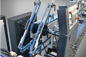 本折部 本折配有上傳動, 折紙皮帶糾正功能, 加長工作部, 使盒子成型更加穩定 |